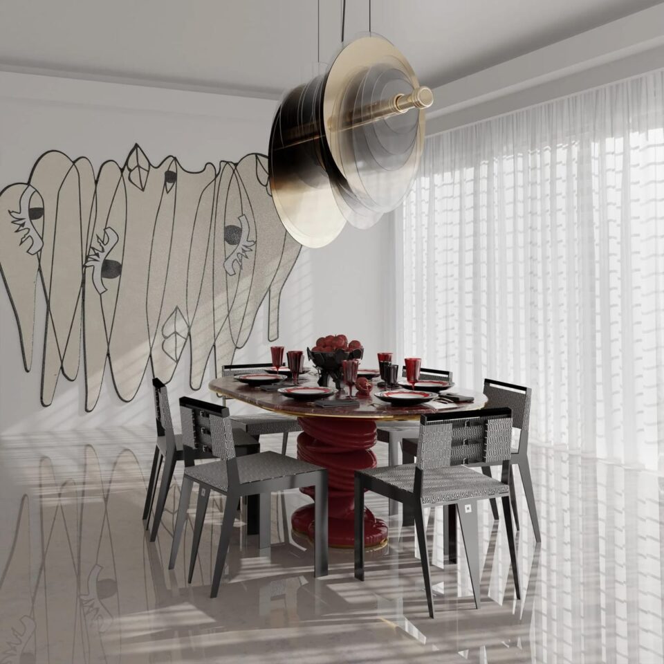 Cher Suspension Lamp features irreverent shapes. Inspired by the mid-century style, this ceiling lamp owns an exquisite selection of materials.